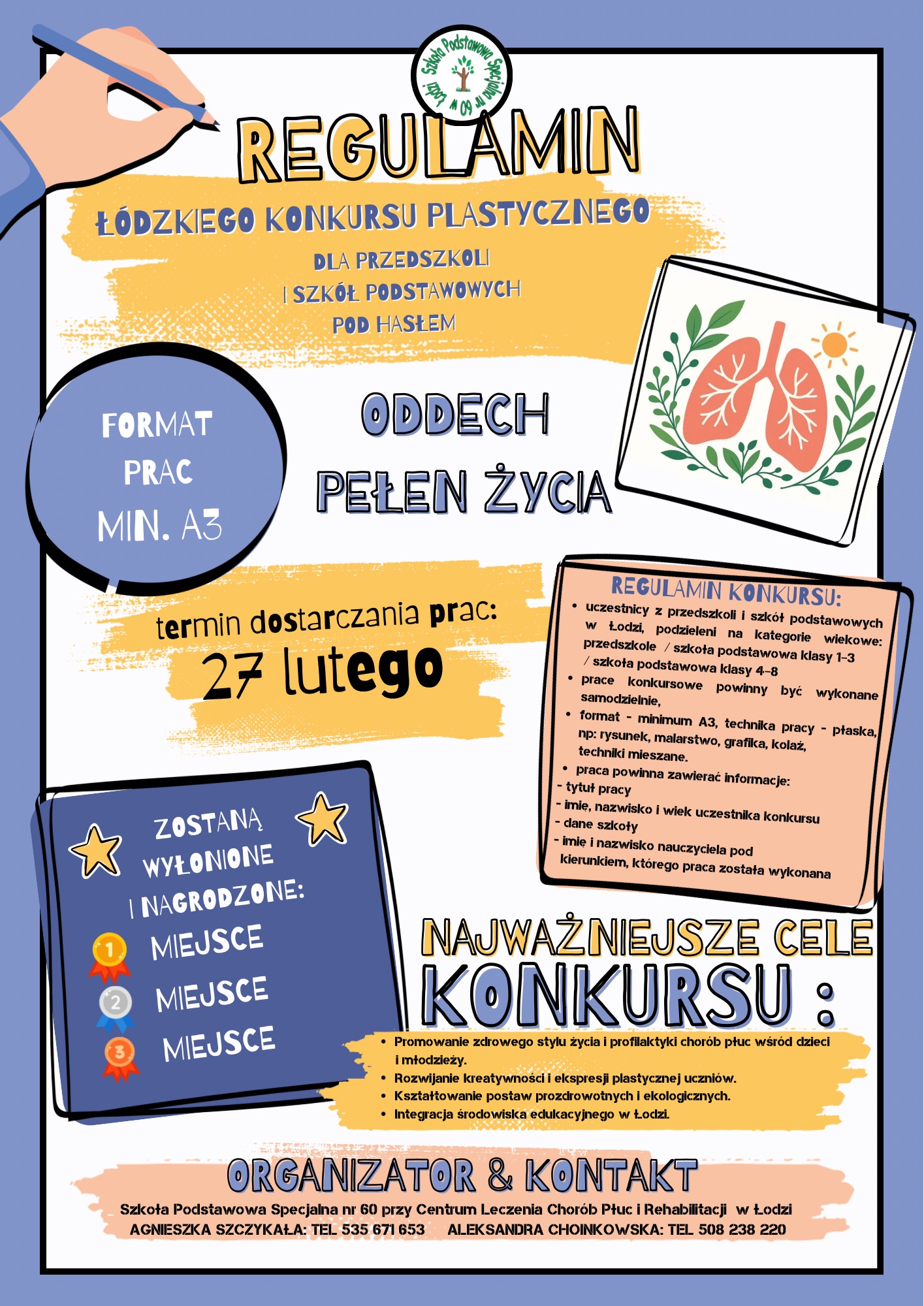 Ogólnopolski Konkurs plastyczno-techniczny "Oddech pełen życia" dla dzieci ze szkół przyszpitalnych i sanatoryjnych.